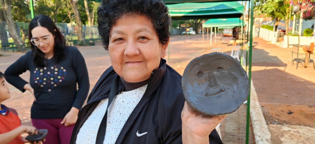 Taller de Cerámica Mbeju Tova: extracción del barro, modelado y quema del plato tradicional según la técnica del ñai’upo (quehacer cerámico). Líderado por la artesana Edita Corvalán, hija de Rosalina Robles, junto a su familia.