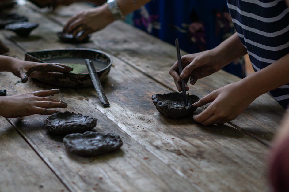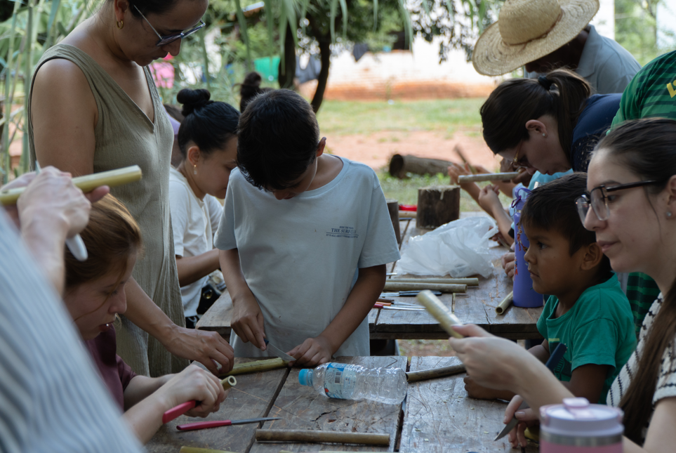 Durante el trayecto visitamos cuatro territorios de la región. Pehuahó, Guarapi, Guayaibity y el centro de la ciudad. Iniciamos el taller del mbeju tova bajo la técnica de Ñai’upo, recientemente galardonada por la Unesco, como Patrimonio Inmaterial de la Humanidad. Estuvieron presentes las artesanas Edita Corvalán, Claudeline Cubilla junto al artesano de apoyo Pablo, sobrino de las ceramistas. Todos oriundos del pueblo de Pehuahó. Posteriormente tuvo lugar el Oratorio de San Roque’i, un puente cultural entre lo místico y religioso, en la ubicación de Guarapi, hasta llegar al destino final, el taller de fabricación de instrumentos con la Banda ancestral Peteke Peteke, en la compañía/ pedanía de Guayaibity, liderado por el director Doroteo Garay y sus familiares, entre ellos jóvenes promesas.